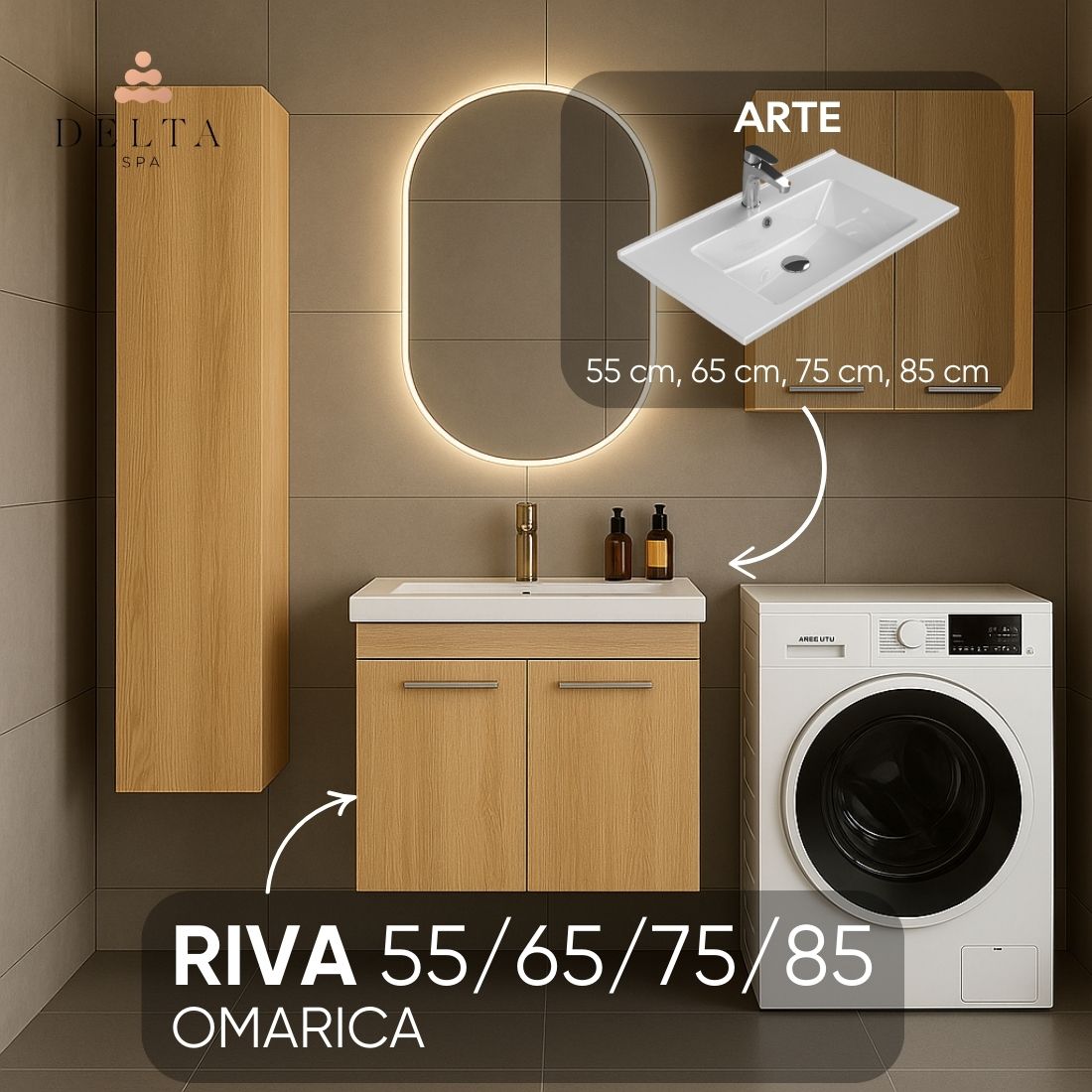 Viseča omarica z vrati in umivalnikom Delta SPA RIVA 55 v hrast sonoma.